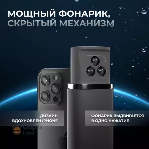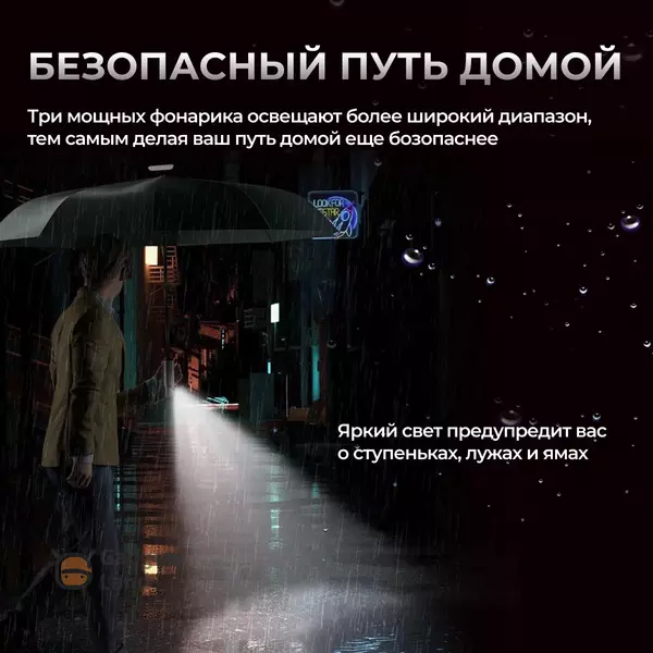 Особенности: встроенный LED-фонарик, складывание вовнутрь